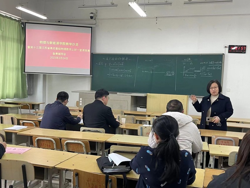 为进一步推动教学方法和教学手段改革,全面提高教师的授课质量和教学水平,888集团welcome以参加“第十三届江苏省高校基础物理教师上好一堂课竞赛”为契机,3月24日-4月11日,我院组织教学研究系列活动,邀请我校食品与生物工程学院江苏省教学名师董玉玮教授和中国矿业大学材料与物理学院江苏省“五一创新能手”张荣副教授对参赛教师进行辅导。张连英院长对参赛教师提出明确要求,近三年新入职全体教师参加,活动由刘冬冬副院长主持。