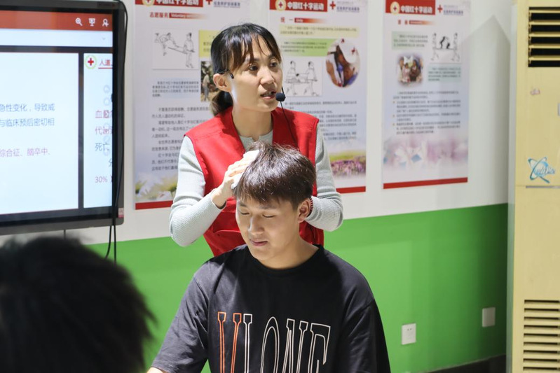 培训内容全面且实用,涵盖了心肺复苏(CPR)、自动体外除颤器(AED)使用及海姆立克急救法等多项基本急救技能。校医院老师结合亲身经历,深刻阐述了急救技能在日常生活中的重要性,并通过理论讲解与现场示范,详细解析了各项技能的操作步骤与注意事项。